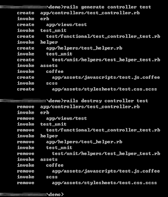 這類的語法,可以分別產生M、V、C。也因為這是自動產生,他會一併產生3~4個檔案。打字打太快,難免會打錯字,這麼多個檔案,要刪除也蠻累。還好,有個逆向的指令可以運用,剛自動產生的那些檔案,它都會一併移除。
