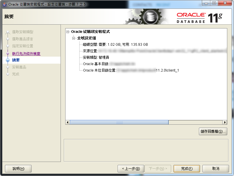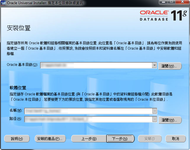 6.設定安裝路徑。這邊特別注意第二個方框的軟體位置,如果電腦曾經安裝過Oracle Client 相關版本,這邊可能會顯示Client_2/Client_3之類的路徑,安裝檔怕會蓋到之前的系統,所以都會自動累加這個數值,同時,在環境變數(PATH)也會同時看到這個目錄。如果有堅持安裝路徑,記得先去把舊的Oracle Client跟相關環境變數清乾淨。